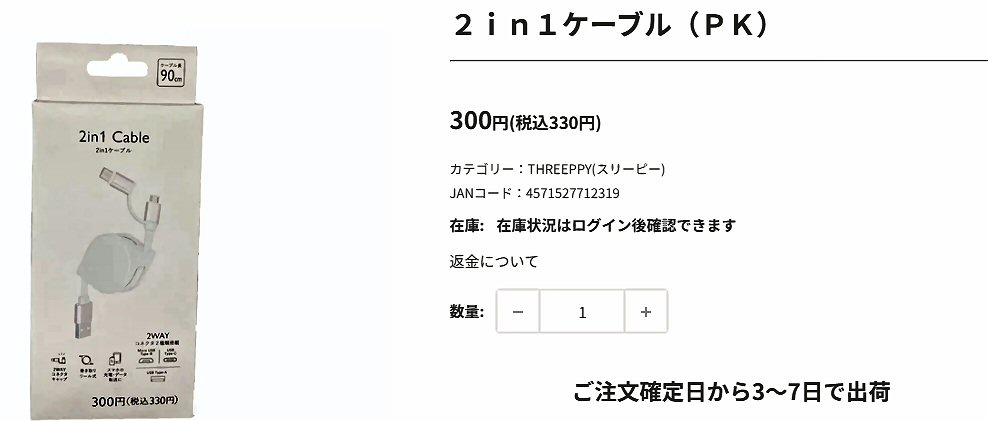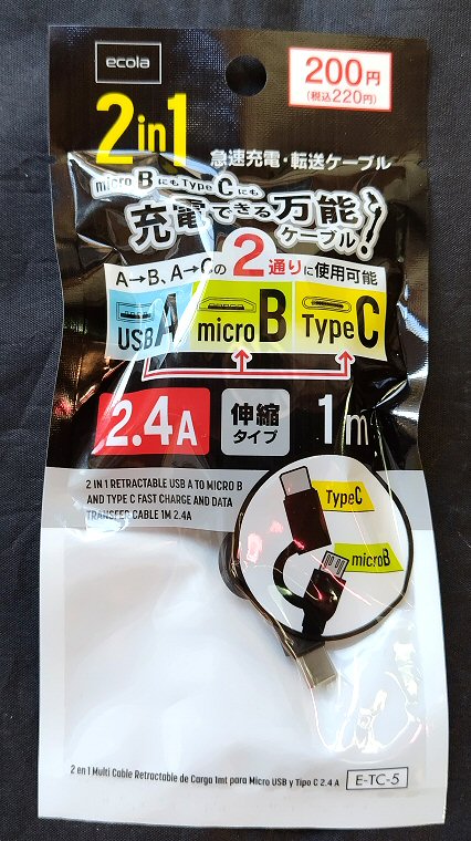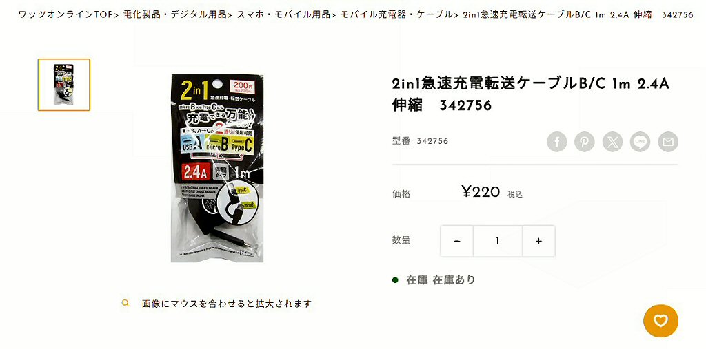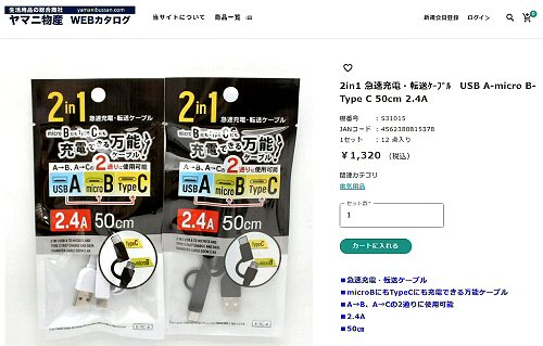峠への招待 > 旅の小道具 > 2in1急速充電・転送ケーブル(ワッツ)