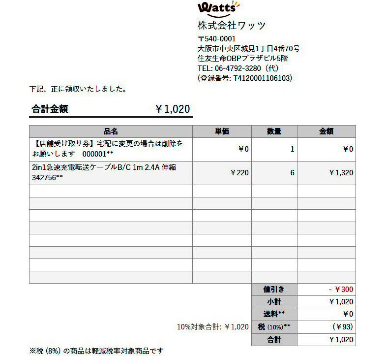 2in1急速充電・転送ケーブル(ワッツ)