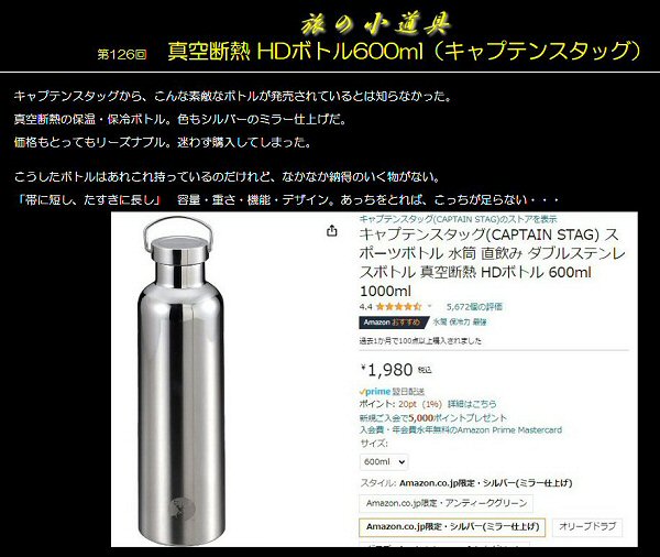 峠への招待 > 旅の小道具 > 真空断熱 HDボトル1000ml(キャプテンスタッグ)
