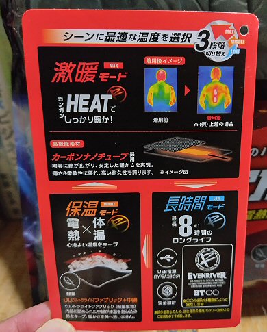 峠への招待 > 旅の小道具 > 電熱ベスト(EVENRIVER)