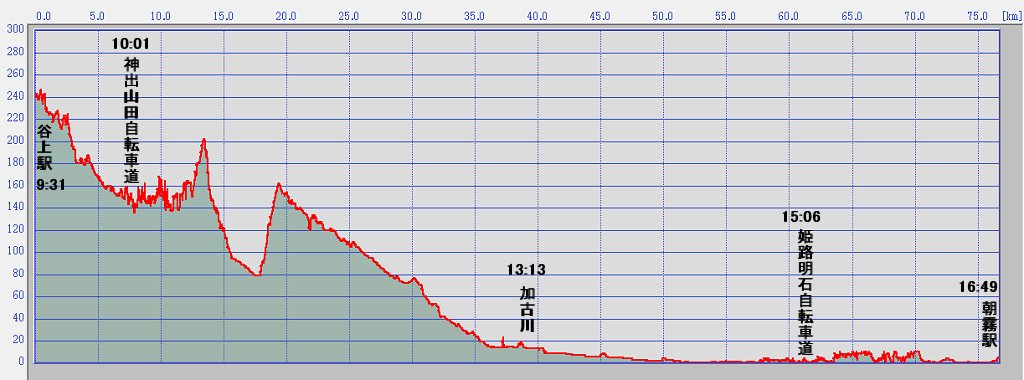 76.6 km 所要時間: 7 時間 30 分 3 秒 平均速度: 毎時 10.2 km |