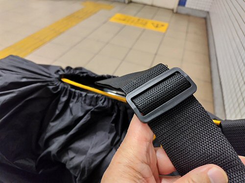 輪行袋も劇的な進化を遂げ、ついに超軽量タイプの薄手の素材が開発された。 ペラペラの生地なので、ショルダーベルトは輪行袋自体には固定できない。 ショルダーベルトは、自転車本体のキャリヤやフレームに固定して運ぶことになった。 この輪行袋に対しても、以前のショルダーベルトを使って輪行を続けてきたが、ついにベルトが切れてしまった。 いざ代用品を、と考えると適当な物がない。こんな重量物に耐えるベルトはあるのか? 探せば何かあるだろうが、結構高そう・・・とりあえず100均に行ってみますか・・・ |