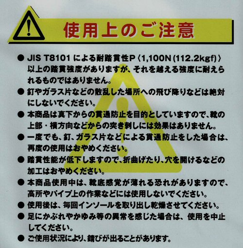 峠への招待 > 旅の小道具 > セーフティー・インソール(ワークマン)