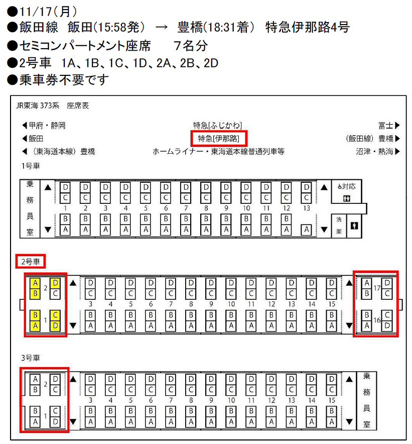 「特急 伊那路4号」 セミコンパートメント座席