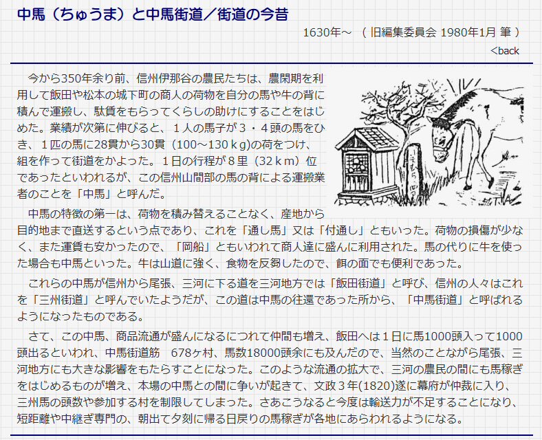 峠ばかりが気になってしまうが、こうした昔の「中馬街道」を辿る旅、なんていうのもいいかもしれない。 |