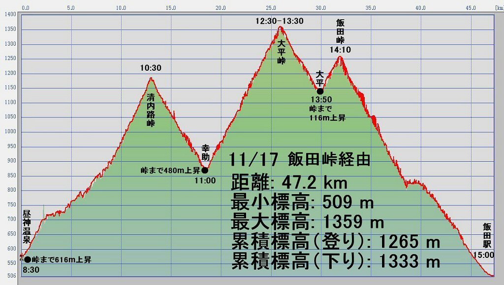 累積標高(登り): 336 m 累積標高(下り): 354 m |